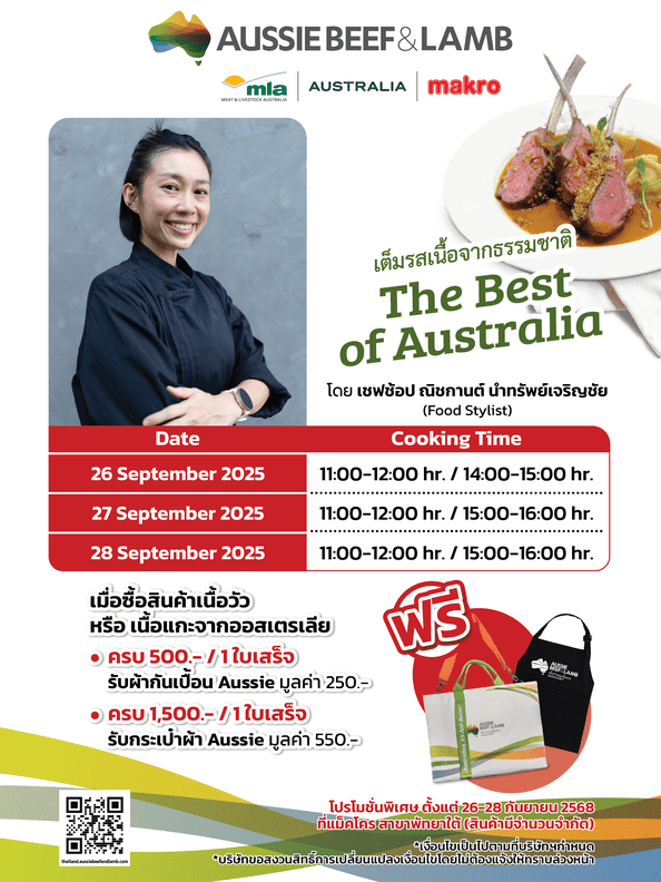 Live cooking demonstrations by Chef Shop Nichakarn from MLA (Meat & Livestock Australia), featuring: